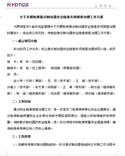 關(guān)于開展電梯鼓式制動(dòng)器安全隱患專項(xiàng)排查治理工作方案