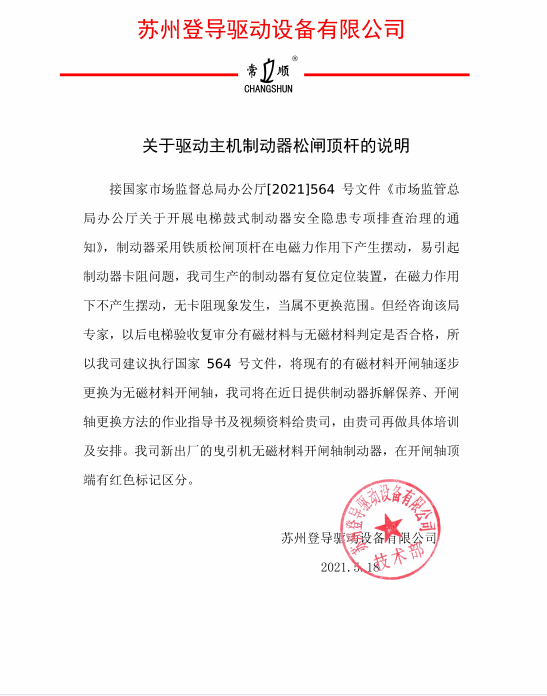 關(guān)于驅(qū)動主機制動器松閘頂桿說明的發(fā)函