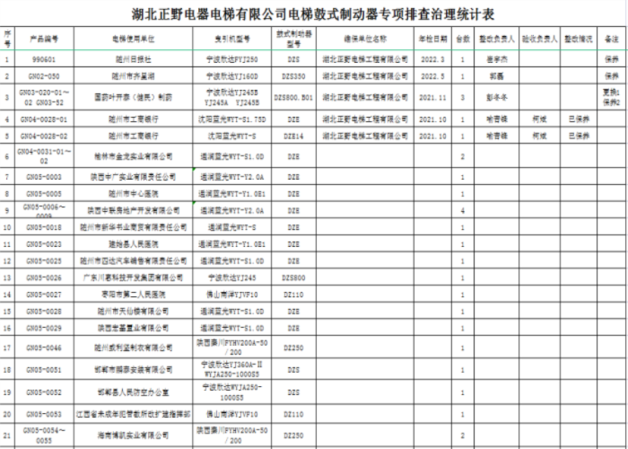 2022-6電梯鼓式制動器專項排查治理統(tǒng)計表